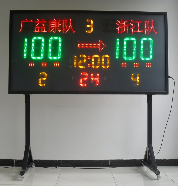 记分牌是根据篮球类比赛的特点精心设计,采用台湾生产的高亮度LED制作,寿命大于10万小时。具亮度高、可视性好、功耗小、使用寿命长等优点。